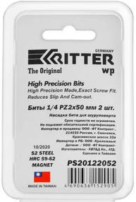 Бита PZ 2х50мм магнитные (сталь S2)(10шт.лента RSC 1шт инд.упак.) Ritter WP PS20122050