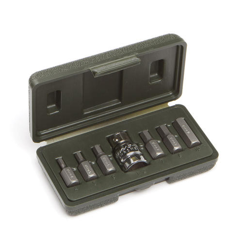 Состав набора: — вставки шестигранные 3/8" (30 мм): 4, 5, 6, 7, 8, 10 мм; — держатель бит 1/2"; — пластиковый кейс. Вставка изготовлена методом холодной штамповки с последующей термической обработкой. Защищена от коррозии полировкой. Применятся при работах с крепежом с внутренним шестигранником. 620,00 ₽ / шт