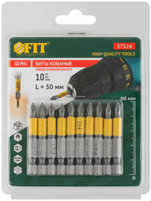 Биты кованые Профи односторонние (10 шт; PH1; 50 мм; сталь S2) FIT 57524 применяются при закручивании и выкручивании различного крепежа. Изготовлены из кованой закаленной стали S2 и обладают высоким ресурсом. Биты проходят процесс прецизионной обточки рабочих граней и имеют высокоточную геометрию. Насечки создают дополнительное сцепление и предотвращают выскальзывание биты из шлица крепежа, что способствует сохранению рабочих качеств обоих предметов. Обточенное тело биты позволяет работать в труднодоступных местах. Пескоструйная обработка бит защищает изделия от коррозии. Шестигранный хвостовик предотвращает проворачивание в патроне и максимально передает крутящий момент от электроинструмента. Специальная проточка на хвостовиках у бит длиной от 50 до 150 мм позволяет работать совместно с быстросъемными адаптерами и с электроинструментом с шестигранным держателем. На хвостовик нанесена маркировка типа биты с целью быстрой идентификации. Магнитный наконечник дополнительно удерживает крепеж во время работы. 60,00 ₽ / шт