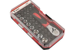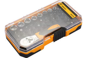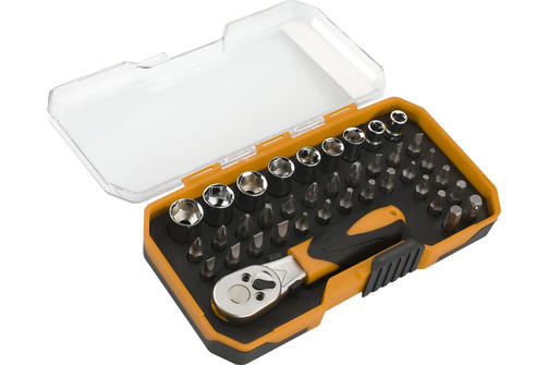 Набор бит DEKO BS38 065-0719 предназначен для работ с резьбовыми соединениями при различных монтажных и ремонтных работах. Размерный ряд бит позволяет произвести широкий спектр работ с различным типом крепежа. Инструмент выполнен из качественной стали высокой прочности. Эргономичная двухкомпонентная рукоять ключа-трещотки комфортна при работе. Набор поставляется в удобном пластиковом кейсе для рационального хранения и транспортировки. 650,00 ₽ / шт