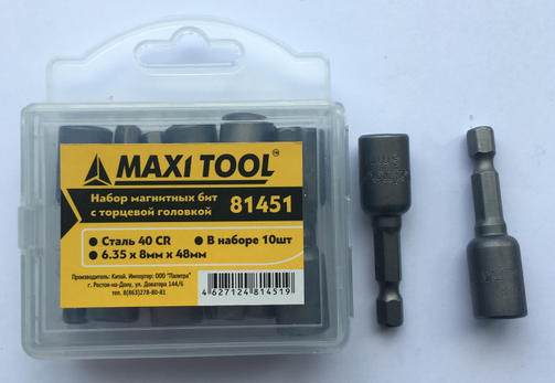 Биты 81451 с торцевой головкой магнитные закал.6.35*8*48мм сталь 40 CR MaxiTool цена за шт.