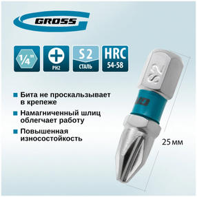 Набор бит РН2x25, сталь S2, 10шт.//GROSS 11330 цена за шт.