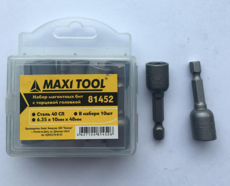 Биты 81452 с торцевой головкой магнитные закал.6.5*10*48мм сталь 40 CR MaxiTool (цена за шт)