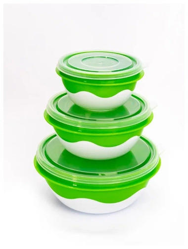 Набор небольших мисочек с крышками. В комплект входят мисочки объёмом 0,3л, 0,6л и 1л, которые удобно хранить, вложив одну в другую. У каждой мисочки есть плотно закрывающаяся крышка, которая предотвратит от высыпания и проливания содержимого. В упаковке 1 цвет. 418,50 ₽ / шт