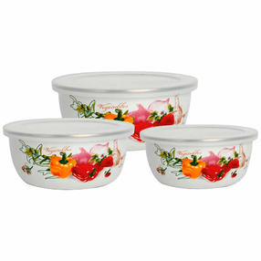 Набор мисок ZEIDAN Z-80624-02, 6 предметов, Набор мисок, 6 предм. (3 миски С крышками: 0,7 Л (d14 см), 1,0 Л (d16 см), 1,7 Л (d18 см) с внутренним эмалированным покрытием), эмалированная сталь, внешнее покрытие - эмаль с рисунком. Подарочная упаковка. 1 270,00 ₽ / шт