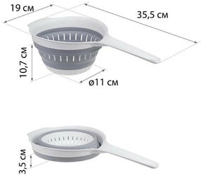 19 М 1127 Дуршлаг ФЛЕКС СКЛАДНОЙ с ручкой СМОКИ М-пластика(18)