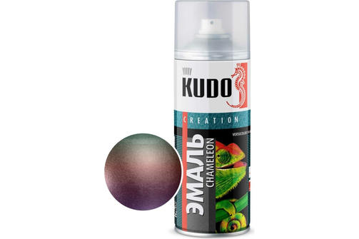Эмаль KUDO CHAMELEON аэрозоль цвет Лавандовая дымка 520мл 11602884а позволяет получить уникальное декоративное покрытие с эффектом преломления света. Интерференционные пигменты в составе служат для изменения цвета в зависимости от угла падения света на поверхность. Покрытие максимально проявляется на изделиях с плавными изгибами. 412,50 ₽ / шт