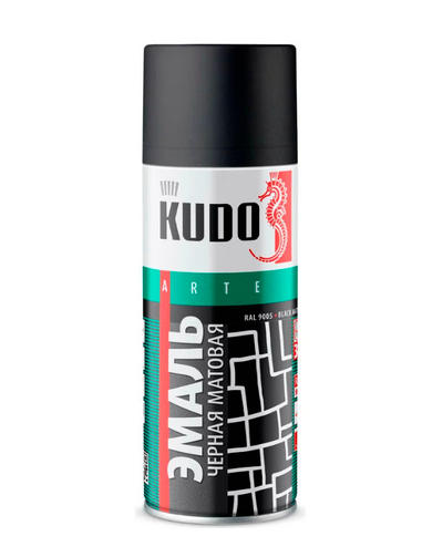 Универсальная эмаль KUDO черная матовая KU-1102 предназначена для окраски предварительно загрунтованных металлических и деревянных поверхностей. Аэрозольная краска легко наносится на труднодоступные места. Образует долговечное покрытие с хорошей укрывистостью, атмосферостойкостью, превосходной адгезией к окрашиваемой поверхности. Имеет высокую твердость, светостойкость и стойкость к растворителям. Применяется для наружных и внутренних работ. 365,00 ₽ / шт