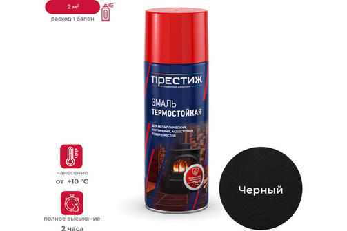 Аэрозольная эмаль Черная термостойкая 750 С Престиж 425мл