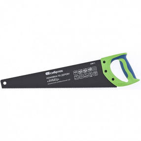 Ножовка по дереву Сибртех «Зубец» 23811 с полотном длиной 450 мм, с калеными зубьями с 2D-заточкой и шагом 7-8 TPI, с защитным покрытием и 2-компонентной рукояткой, используется для распиливания заготовок из древесины, фанеры и ДСП. Выполняет продольный и поперечный распил. Заточка зубьев 2D дает возможность пилить по направлению как вперед, так и назад. Зубья с универсальным шагом 7-8 TPI обеспечивают оптимальную скорость и качество реза. Если режущая кромка затупится, ее можно будет заточить. Ножовка будет полезна в столярной мастерской, а также дома или на даче. Преимущества Полотно из пружинной стали 65 Mn характеризуется высокой упругостью и прочностью. Рабочая кромка с закаленными зубьями долго сохраняет режущие свойства. Поверхность с тефлоновым покрытием не подвержена коррозии. Тефлоновое покрытие уменьшает трение во время пиления, что увеличивает скорость работы. Зафиксированная 3 винтами рукоятка крепко держится на полотне. Эргономичная рукоятка из ударопрочного пластика с резиновыми вставками снижает нагрузку на кисть во время длительной работы. 770,00 ₽ / шт