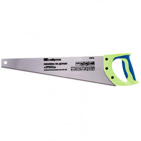 Ножовка Сибртех по дереву «Зубец» 23814 с полотном длиной 450 мм, калеными зубьями с 3D-заточкой и шагом 7-8 TPI, 2-компонентной рукояткой, предназначена для продольной и поперечной распиловки древесины, фанеры и ДСП. Инструмент обладает высокой производительностью благодаря зубьям с универсальным шагом 7-8 TPI и трехгранной заточке. Ножовка используется для выполнения столярных и плотницких работ, будет полезна в быту. Преимущества Полотно изготовлено из легированной стали 65Mn, чем обусловлена его прочность и устойчивость к деформациям. Зубья ножовки закалены, что обеспечивает ей высокий ресурс работоспособности. Поверхность полотна покрыта лаком для защиты от коррозии. Рукоятка закреплена на полотне 3 винтами, поэтому не соскочит во время работы. Материал двухкомпонентной рукоятки — ударопрочный ABS-пластик, обеспечивающий надежность инструмента. Эргономичная рукоятка удобно лежит в руке, что повышает комфортность работы. 900,00 ₽ / шт