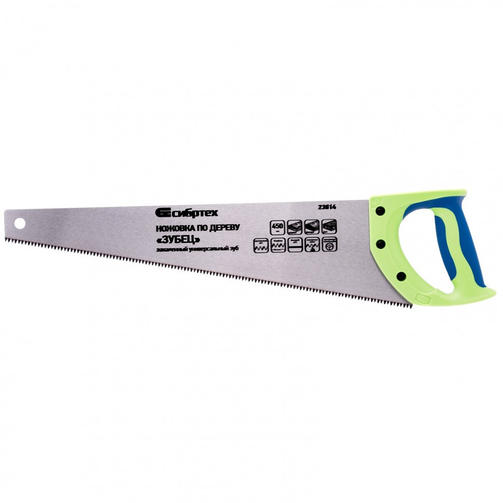 Ножовка по дереву "Зубец",450 мм,7-8 TPI,зуб 3D,кал зуб,двухкомп.рукоятка //СИБРТЕХ 23814