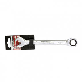 Комбинированный трещоточный ключ Matrix 14809 из стали CrV, с покрытием «зеркальный хром», 16 мм, позволяет быстро откручивать и закручивать болты и гайки. Рожковую часть удобно использовать там, где нет возможности полного охвата детали, а трещоточный механизм повышает удобство работы в труднодоступных местах. Преимущества Ключ сделан из стали высокого качества 40CrV, храповый механизм имеет твердость 58 HRC, поэтому инструмент легко выдерживает интенсивные нагрузки. Зеркальное хромоникелевое покрытие обеспечивает защиту ключа от коррозии. Накидная часть с 12-гранным профилем охватывает деталь полностью, таким образом снижается риск деформации граней крепежа. 600,00 ₽ / шт