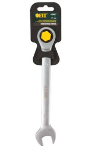 Ключ комбинированный трещоточный 17мм FIT 63467 Трещоточный механизм 72 зуба – минимальный угол поворота 5°. 12-гранный профиль накидной части обеспечивает надежный захват крепежных элементов и снижает риск их деформации. Материал: термообработанная инструментальная сталь, реверсивный механизм из хром-ванадиевой стали. Упаковка: пластиковый подвес. 738,00 ₽ / шт