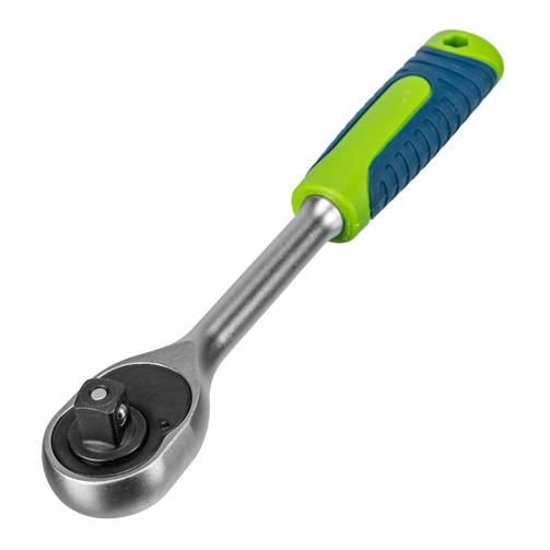 Ключ-трещотка с присоединительным квадратом 1/2", функцией быстрого сброса и храповым механизмом с 45 зубьями, имеет покрытие «матовый хром» и используется с торцевыми головками, имеющими посадочное гнездо соответствующего размера. Предназначен для закручивания и раскручивания резьбового крепежа. Храповой механизм с 45 зубцами обеспечивает плавное вращение. Ключ применяется для ремонта автомобилей, техники и оборудования, пригодится также дома и на даче. Прочность и долговечность — инструмент изготовлен из высококачественной закаленной стали, рабочая часть хромирована для защиты от коррозии. Быстрый переход от монтажа к демонтажу — направление вращения меняется при помощи переключателя. Простая установка и замена насадки — механизм быстрого сброса позволяет моментально снимать торцевую головку. Надежная фиксация оснастки — металлический шарик-держатель крепко удерживает торцевую головку, адаптер, удлинитель и т.д. Комфортная эксплуатация — эргономичная двухкомпонентная рукоятка удобно ложится в руку. Технические характеристики 1 020,00 ₽ / шт