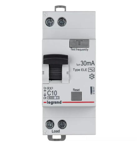 Выключатель автоматический дифференциального тока 2п (1P+N) C 10А 30мА тип AC 6кА RX3 Leg 419397