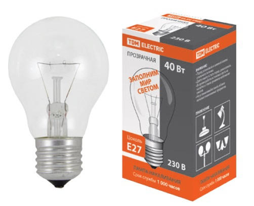 Лампа накаливания общего назначения Б75 Вт-230 В-Е27 TDM