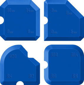 Преимущества Не царапает поверхность Эргономичная форма Высококачественный эластичный материал Количество шпателей - 4 Описание 4 небольших силиконовых шпателя имеют по 4 различных размера и радиуса для придания формы шву герметика. Применение Для формовки швов герметика 269,00 ₽ / шт