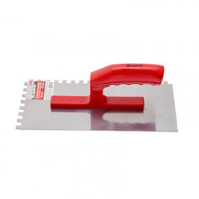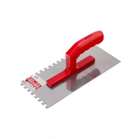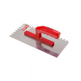Стальная гладилка Matrix 86778 размером 280 x 130 мм, с зубьями 8 x 8 мм, зеркальной полировкой и пластмассовой ручкой, поможет ровно нанести штукатурку или строительный раствор. Зубчатые края гладилки обеспечивают правильное распределение плиточного клея для прочной фиксации плитки. Преимущества Долговечность — стальное рабочее полотно устойчиво к деформациям и износу. Эффективная работа — благодаря зеркальной полировке к полотну не прилипают материалы, поэтому гладилку можно использовать с быстрозастывающими составами. Эргономичность — рукоятка с подпальцевыми выемками делает работу более комфортной. 429,00 ₽ / шт