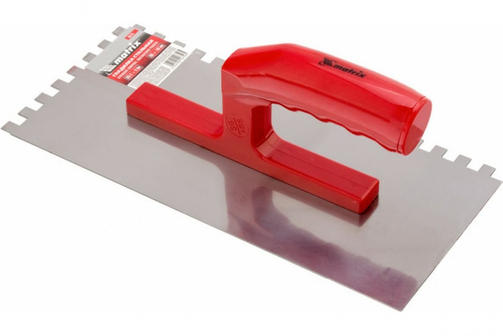 Гладилка Matrix 86783 размером 280 x 130 мм, из нержавеющей стали, с зубьями 10 x 10 мм, зеркальной полировкой и пластмассовой ручкой, пригодится любителям и частным мастерам при проведении ремонтных работ. Она позволяет равномерно наносить строительные растворы и плиточный клей на подготовленные под отделку поверхности. Преимущества Долговечность — гладилка из нержавеющей стали не боится коррозии, обладает оптимальным соотношением упругости и прочности. Высокое качество работ — отполированное полотно обеспечивает максимально равномерное распределение растворов, в том числе быстрозастывающих. Комфортная эксплуатация — эргономичная пластиковая ручка удобно лежит в руке, что позволяет долго работать без усталости. 510,00 ₽ / шт