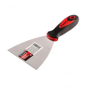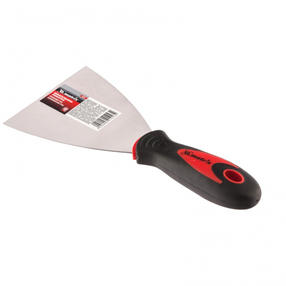 Шпательная лопатка из нержавеющей стали Matrix 85510, шириной 100 мм, с 2-компонентной ручкой, предназначена для нанесения и выравнивания строительных смесей, шпаклевания швов, заполнения трещин, удаления старых обоев. За счет компактных размеров инструмент подходит для корректировки мелких трещин и неровностей. Преимущества Высокий ресурс — профилированное полотно изготовлено из нержавеющей стали, отполировано и надежно соединено с рукояткой. Гибкость в сочетании с прочностью — термически обработанное рабочее полотно отличается высокой твердостью. Эргономичность — рукоятка анатомической формы с нескользящим покрытием обеспечивает надежный захват инструмента и комфортную работу. Отверстие для удобного хранения — лопатку можно вешать на крючок или гвоздь. 299,00 ₽ / шт