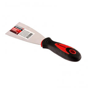 Шпательная лопатка из нержавеющей стали Matrix 85506, шириной 60 мм, с 2-компонентной ручкой, предназначена для нанесения и выравнивания строительных смесей, шпаклевания швов, заполнения трещин, удаления старых обоев. За счет компактных размеров инструмент подходит для корректировки мелких трещин и неровностей. Преимущества Высокий ресурс — профилированное полотно изготовлено из нержавеющей стали, отполировано и надежно соединено с рукояткой. Гибкость в сочетании с прочностью — термически обработанное рабочее полотно отличается высокой твердостью. Эргономичность — рукоятка анатомической формы с нескользящим покрытием обеспечивает надежный захват инструмента и комфортную работу. Отверстие для удобного хранения — лопатку можно вешать на крючок или гвоздь. 259,00 ₽ / шт