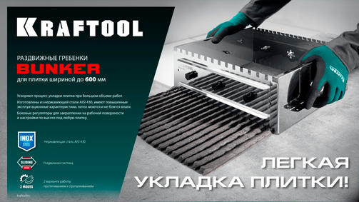 KRAFTOOL BUNKER-4 зуб 8, 10, 12 мм, полукруг 10х20 мм, нерж. сталь, Раздвиж.гребенка д/плитки(08081)