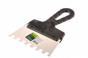 Шпатель из нержавеющей стали, 250 мм, зуб 6х6 мм, пластмассовая ручка// Сибртех 85465