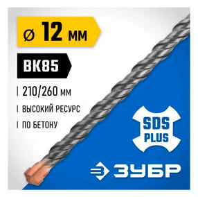 Бур ЗУБР Профессионал (12x260 мм; SDS-plus) 29314-260-12_z02 имеет повышенный ресурс благодаря усиленному наконечнику из твердого сплава ВК85; БЫСТРЫЙ: конструкция головки бура из наконечника с двумя резцами и центрирующим острием для быстрого сверления.; ДИНАМИЧНЫЙ: геометрия наконечника в форме зубила для динамичного и агрессивного врезания в материал.; ПРОИЗВОДИТЕЛЬНЫЙ: спираль 4С с усиленным сердечником обеспечивает оптимальное соотношение между устойчивостью к излому бура и быстрым отводом шлама, подавляет вибрацию и способствует лучшей передаче энергии удара непосредственно на твердосплавный резец. 495,00 ₽ / шт