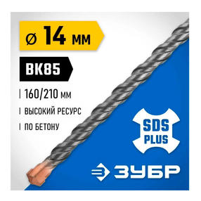 Бур ЗУБР Профессионал (14x210 мм; SDS-plus) 29314-210-14_z02 имеет повышенный ресурс благодаря усиленному наконечнику из твердого сплава ВК85; БЫСТРЫЙ: конструкция головки бура из наконечника с двумя резцами и центрирующим острием для быстрого сверления.; ДИНАМИЧНЫЙ: геометрия наконечника в форме зубила для динамичного и агрессивного врезания в материал.; ПРОИЗВОДИТЕЛЬНЫЙ: спираль 4С с усиленным сердечником обеспечивает оптимальное соотношение между устойчивостью к излому бура и быстрым отводом шлама, подавляет вибрацию и способствует лучшей передаче энергии удара непосредственно на твердосплавный резец. 440,00 ₽ / шт