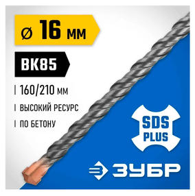 Бур ЗУБР Профессионал (16x210 мм; SDS-plus) 29314-210-16_z02 имеет повышенный ресурс благодаря усиленному наконечнику из твердого сплава ВК 85; -БЫСТРЫЙ: конструкция головки бура из наконечника с двумя резцами и центрирующим острием для быстрого сверления.; -ДИНАМИЧНЫЙ: геометрия наконечника в форме зубила для динамичного и агрессивного врезания в материал.; -ПРОИЗВОДИТЕЛЬНЫЙ: спираль 4С с усиленным сердечником обеспечивает оптимальное соотношение между устойчивостью к излому бура и быстрым отводом шлама, подавляет вибрацию и способствует лучшей передаче энергии удара непосредственно на твердосплавный резец. 550,00 ₽ / шт