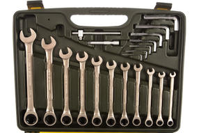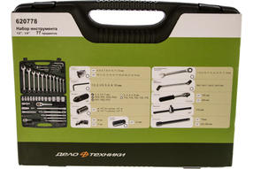 Набор инструмента с трещоточными ключами 77 предметов ДТ/4 Дело Техники 620778 пригодится в автомастерской или гараже для выполнения ремонтных работ. Составляющие изготовлены из прочной хромованадиевой стали, стойкой к возникновению коррозии. Инструменты располагаются в пластиковом чемодане для компактного хранения и транспортировки. 15 030,00 ₽ / шт