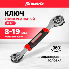Ключ универсальный 48 в 1, СrV, 8-19мм, Spline Matrix 14999