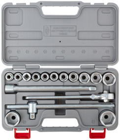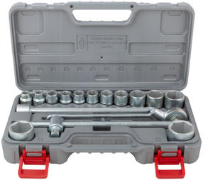 «Всё для автомобиля» Комплектация: вороток-рычаг с присоединительным квадратом 1/2”x300 мм, удлинитель 1/2”x250 мм, вороток трещоточный 1/2”x250 мм, головки шестигранные 1/2” 10-11-12-13-14-15-17-19-22-24-27-30-32 мм. Материал: износоустойчивая конструкционная легированная сталь. Упаковка: пластиковый чемодан. 2 600,00 ₽ / шт
