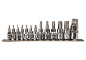 Головки изготовлены из стали марки S2, которая обеспечивает высокую прочность и долговечность; Выверенная геометрия обеспечивает эффективность при работе с крепежом Набор поставляется на металлическом держателе Набор сосотит из 13 предметов 1/4" - T8-10-15-20-25-30 1/2" - 40-45-50-55-60 3/8" - 70 Биты изготовлены из сплава S2 Поставляются на металлическом держателе. Особенности Высокое качество и долговечность: качественная легированная сталь обеспечивает повышенную износостойкость предметов и защиту поверхности от коррозии. 1 050,00 ₽ / шт