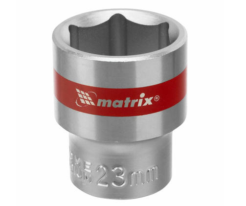 Головка торцевая, 23 мм, шестигранная, CrV, под квадрат 1/2, хромированная Matrix13123