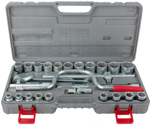 «Всё для автомобиля». Комплектация: вороток трещоточый 1/2” х 250 мм, переходник шарнирный 1/2”, вороток-рычаг с присоединительным квадратом 1/2”, удлинитель 1/2”x125 мм , удлинитель 1/2”x250 мм , головки шестигранные 1/2” 10-12-13-14-15-16-17-18-19-20-21-22-23-24-25-26-27-28-30-32 мм. Материал: износоустойчивая конструкционная легированная сталь. Упаковка: пластиковый чемодан. 4 500,00 ₽ / шт