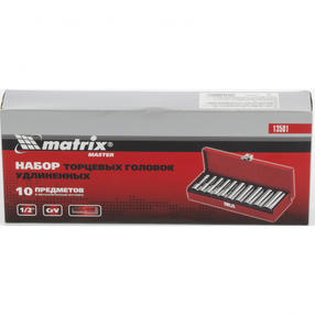 Набор торцевых головок 1/2", головки 10 - 22 мм, удлиненные, 10 предметов Matrix13581