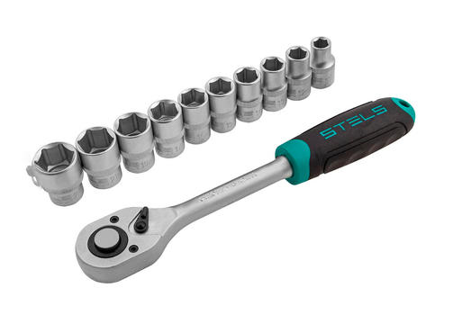 Набор торцевых головок,1/2",головки 10-22мм,с трещот.ключом,CrV.11 предм//Stels 14127