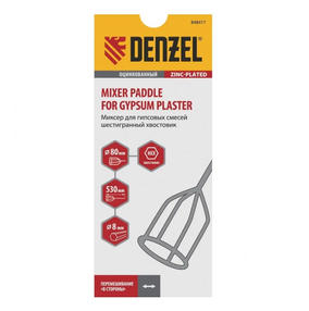 Миксер для гипсовых смесей, 80 х 530 мм, оцинкованный, шестигранный хвостовик 8 мм Denzel 848417