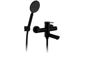 A53001-7 смеситель ванно-душевой с душевым гарнитуром чёрный сталь SUS304, картридж D=35 мм излив: L=120 мм, поворотный, переключение потока установочный комплект + ручная лейка: чёрная, сталь SUS304, D=96 мм, антикальк держатель настенный: чёрный, сталь SUS304 шланг: чёрный, 1500 мм, оплётка сталь SUS304 Переключение режимов поворотом крана 8 500,00 ₽ / шт