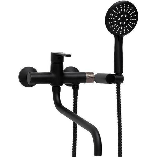 Смеситель для ванны Haiba HB22652-7 универсальный с душевым гарнитуром. Характеристики: Цвет: черный матовый. Материал: латунь. Управление: однорычажное. Механизм: керамический картридж 35 мм. Излив: поворотный. Стандарт подводки: G 1/2. Тип подводки: жесткая. Аэратор. Длина душевого шланга: 1500 мм. Монтаж: на стену. В комплекте поставки: Смеситель для ванны. Ручной душ. Душевой шланг. 10 100,00 ₽ / шт
