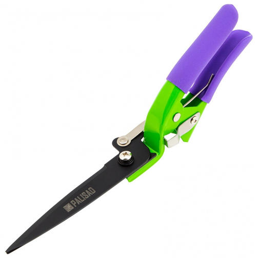 Газонные ножницы Palisad 60573 длиной 310 мм, с металлическими обрезиненными рукоятками, предназначены для стрижки травы вдоль бордюров, дорожек, ограждений, возле кустов. Режущие части закалены и остро заточены, поэтому инструмент полностью готов к работе. Тефлоновое покрытие защищает лезвия от коррозии и предотвращает налипание на них травяного сока, грязи и пыли. Механизм самооткрывания предотвращает заедание лезвий при стрижке жесткой травы. Ножницы пригодятся владельцам дачных участков. Преимущества Надежность — инструмент изготовлен из прочной среднеуглеродистой стали, а режущие кромки имеют твердость 43-46 HRC, что обеспечивает им высокий ресурс. Безопасность — металлический фиксатор надежно удерживает лезвия в нерабочем положении. Защита от коррозии — рукоятки покрыты порошковой эмалью. Комфорт во время работы — на рукоятках имеются нескользящие ПВХ-накладки. Возможность регулировки — в случае снижения качества реза плотность смыкания лезвий можно отрегулировать при помощи винта. 1 010,00 ₽ / шт