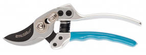 Усиленный секатор прямого реза Palisad LUXE 60529 длиной 170 мм, с нижней рукояткой в ПВХ-оболочке, используется для обрезки живых веток толщиной до 18 мм. Обладает повышенной мощностью благодаря шарниру особой конструкции, увеличивающему усилие сжатия на 10%. Регулировочный винт позволяет изменить плотность смыкания лезвий. Секатор пригодится для работы на загородном участке. Преимущества Лезвия изготовлены из высококачественной японской инструментальной стали SK-5, поэтому характеризуются повышенной прочностью и износостойкостью. Рабочие кромки движутся параллельно друг другу, обеспечивая минимальное повреждение растения при обрезке. Индукционная закалка и прецизионная заточка режущей кромки обеспечивают ей высокий ресурс работоспособности. Режущее лезвие имеет тефлоновое покрытие, защищающее от ржавчины, а также снижающее силу трения и облегчающее работу с инструментом. Цинковое покрытие опорного лезвия предотвращает образование на нем коррозии, что повышает долговечность секатора. Фиксатор, удерживающий лезвия в сомкнутом положении, не дает им раскрыться во время хранения или транспортировки. Литые алюминиевые рукоятки выдерживают значительные нагрузки, что делает инструмент оптимальным приспособлением для работы в саду и огороде. Нижняя рукоятка с ПВХ-покрытием надежно лежит в руке, что повышает комфортность работы. 1 700,00 ₽ / шт