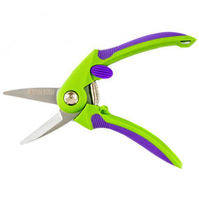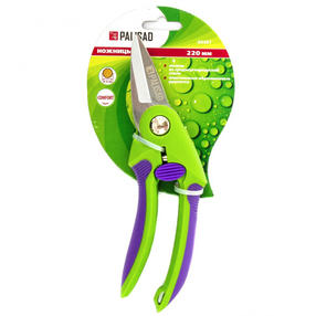 Цветочный секатор Palisad 60487 длиной 220 мм, с двухкомпонентными рукоятками, — садовый инвентарь для срезания молодых побегов и стеблей диаметром до 10 мм, а также оформления топиарных скульптур и крон бонсай. Срез получается ровным и чистым, поскольку лезвия движутся в параллельных плоскостях. Секатор может использоваться для разрезания картона, ткани, бумаги, подвязочного материала. Будет полезен дома и на даче. Преимущества Прочность — лезвия изготовлены из высокоуглеродистой стали. Высокий ресурс — лезвия прошли индукционную закалку, а режущие кромки остро заточены. Коррозионная стойкость — на рабочие поверхности нанесено хромированное покрытие. Возможность подгонки лезвий — регулировочный винт позволяет изменять плотность их смыкания. Долговечность — рукоятки из полипропилена устойчивы к воздействию ультрафиолета. Комфорт во время работы — рукоятки обрезинены и не выскальзывают из ладони. 650,00 ₽ / шт