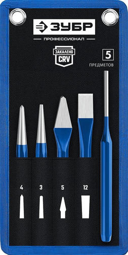 ЗУБР 5 предметов, набор шестигранных зубил и кернеров в чехле, Профессионал (21070-H5)
