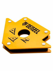 Магнитный фиксатор Denzel 50 LB 97553 значительно упрощает проведение сварочных и паяльных работ с металлическими профилями, уголками, трубами прямоугольной и круглой формы, пластинами и другим типом металла. Он позволяет быстро и легко зафиксировать конструкцию весом до 23 кг под необходимым углом и работать без риска ее падения или смещения. Преимущества Высокая эффективность — инструмент упрощает сварочный процесс, не требует особых усилий в использовании и надежно держит выставленные детали под самыми востребованными углами: 45, 90 или 135 градусов. Износостойкий корпус — при высоких нагрузках и в случае падения фиксатора его стенки не деформируются и обеспечивают точную сборку деталей. Универсальный размер 155 х 105 х 15 мм — фиксатор подойдет для соединения как крупных, так и средних по размеру деталей без привлечения дополнительных зажимов и струбцин. Простое и быстрое обслуживание — по окончании работ достаточно смахнуть налет с инструмента щеткой. 450,00 ₽ / шт