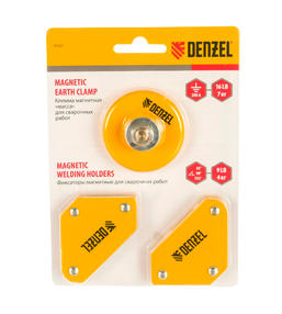 Набор из 2 магнитных сварочных фиксаторов и магнитной клеммы "масса" Denzel 97557