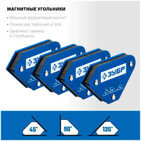 ЗУБР УМ-3, 4 шт, 4 кг, набор угольников магнитных для сварочных работ, Профессионал (40050-04)