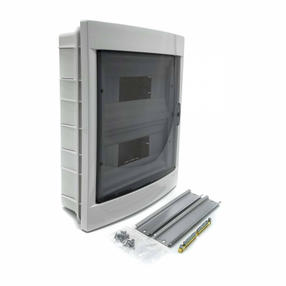 Бокс внутренний на 24 модуля 90912024 от VIKO Panasonic предназначен для установки модульных устройств, таких, как автоматические выключатели, УЗО, дифференциальные автоматы, таймеры, устройства управления освещением. Бокс обладает современным дизайном, идеально подходит к любому интерьеру. Надёжная конструкция и прочный пластик, удобные крепёжные приспособления гарантируют долгий срок службы и безопасность эксплуатации. Изделие изготавливается из качественного прочного и огнеупорного пластика. Лицевая панель выполнено из белого АБС-пластика, отличается ударопрочностью и термостойкостью. Оснащена прозрачной пластиковой крышкой, поворачивающаяся на 180°, с запирающим механизмом. Модель предназначена для скрытой установки и монтажа в ней до 24 модульных устройств в два ряда. Просторное внутреннее пространство короба обеспечивает удобство работы при монтаже. Комплектуется пузырьковым уровнем, оцинкованной DIN-рейкой, нулевой шиной и крепёжными элементами. Температурный режим эксплуатации: от -15°С до +60°С. Габаритные размеры: 314х344х105 мм. 2 810,00 ₽ / шт